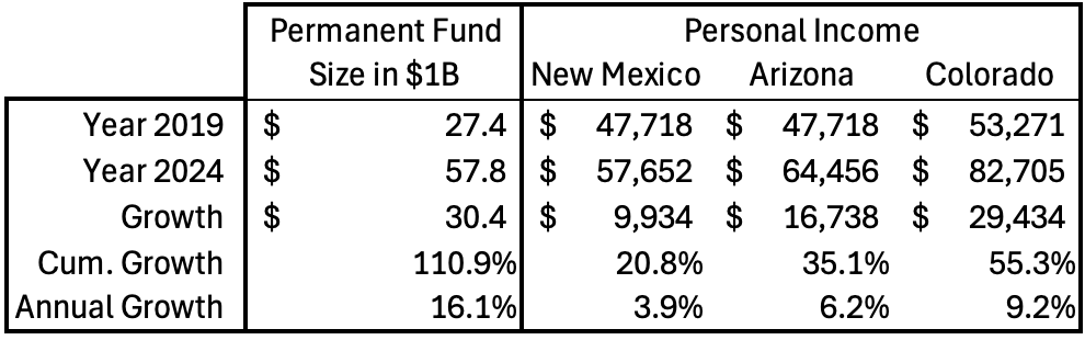 In addition, I’m not saying the Permanent Fund doesn’t do good things. It does a lot of good and funds a significant part of our education. What I’m saying is different: a portion of the enormous growth of the Permanent Fund should be used to grow New Mexico.